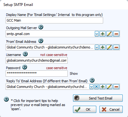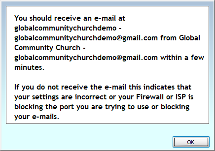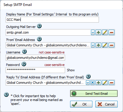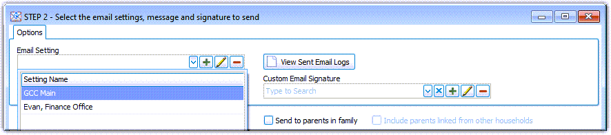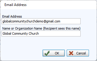 • Multiple email accounts can be set up within Church Windows. This allows users to send emails from their individual work email account or the larger organization email account. Each of these accounts will be listed in the Email Setting drop down list.