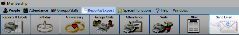 To access from the Membership Button Bar, go to Reports/Exports > Send Email