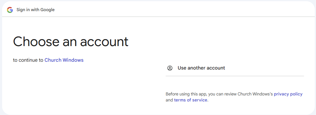 After entering your Gmail information, you'll set up authentication to give Church Windows permissions to route emails through your Gmail account. This should be a one-time process, unless there are significant changes to your Gmail account.