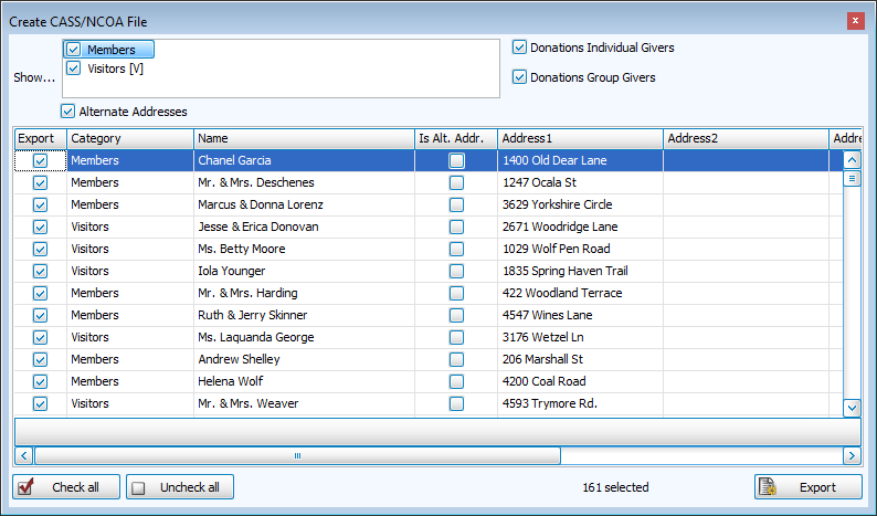 Check the types of records you want to export, as well as whether to include Alternate Addresses.