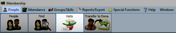 To access from the Button Bar, go to People > Visits.