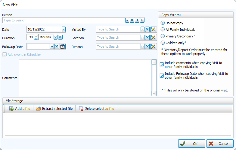 If you have brand new people who do not yet have a record, you can add them from the Visits home screen by clicking