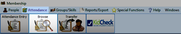 To access from the Button Bar, go to Attendance > Browse .