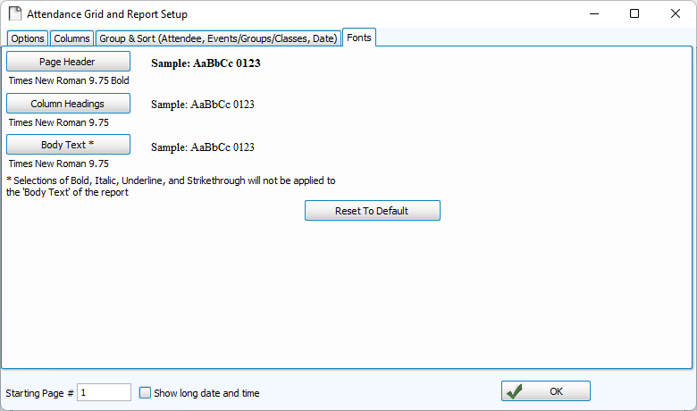 to open Attendance Options.