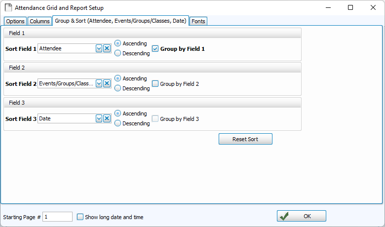 to see all of the dates attended when sorted by Attendee, or to see all attendees when sorted by date.