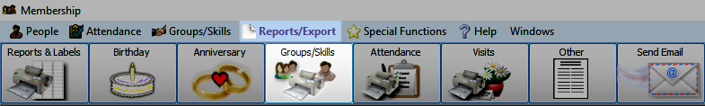 To access from the Button Bar, go to Reports/Exports > Groups/Skills.