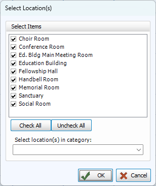 Check the Show scheduled only box to display only the locations/equipment/people that have been assigned.