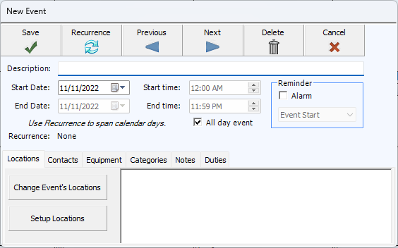 Enter a brief description of the event in the box. The information you type here will appear on the grid, as well as reports about this event.