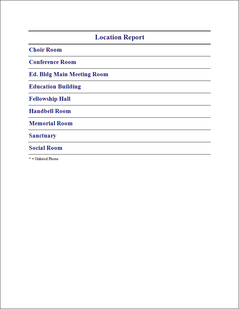 The Location Report is a listing of all (or selected) Locations that have been identified in Scheduler.