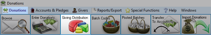 To access from the Button Bar, go to Donations > Giving Distribution.