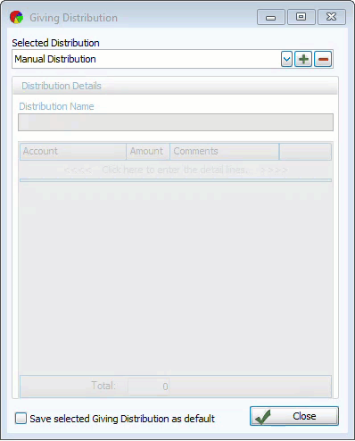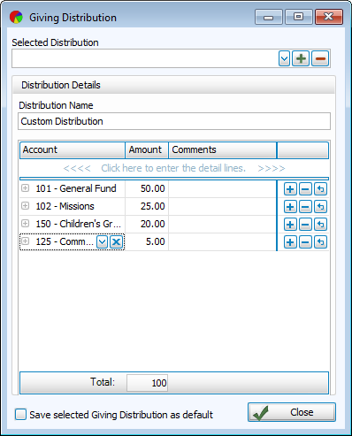 Custom Distribution - Create your own proportions and accounts to use as a default for donations entry.