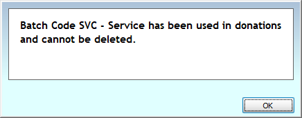 Batch codes that have had use in donations can not be deleted, even it's only recorded in reversals.