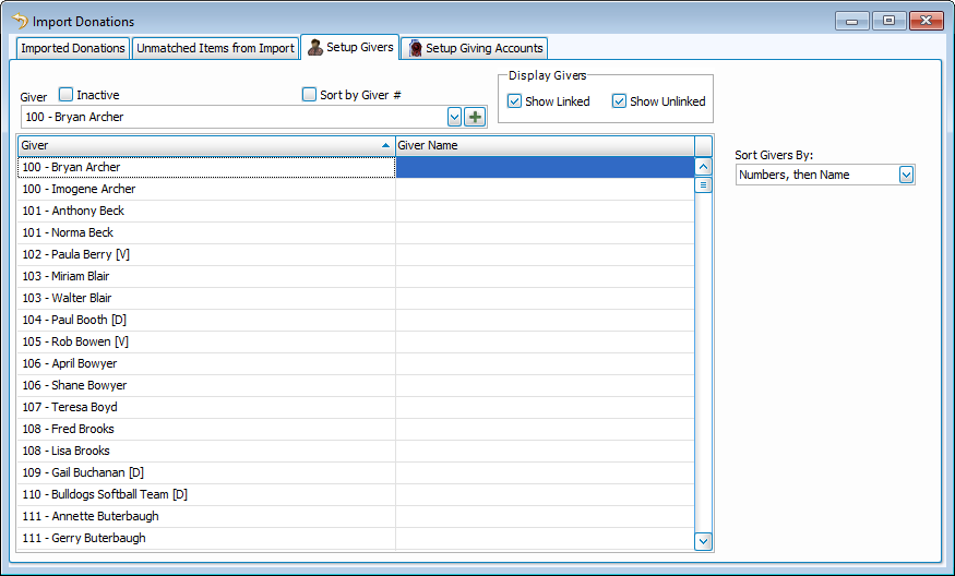 Manage Givers for Import