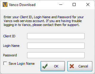 Confirm the date range and enter your Vanco credentials.