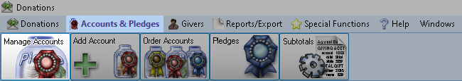 To access from the Button Bar, go to Accounts & Pledges > Manage Accounts.
