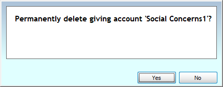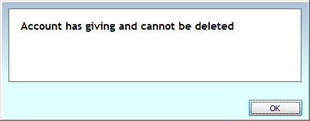 Only accounts with no giving or pledging history can be deleted. Alternatively, checking the Inactive check box to archive an unused account.