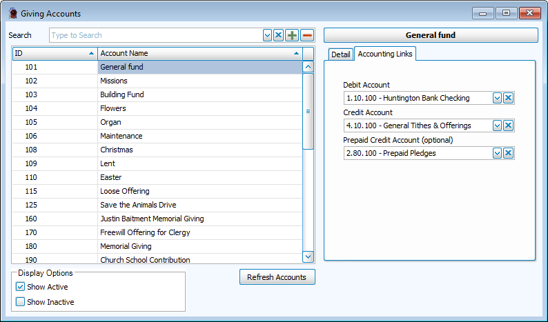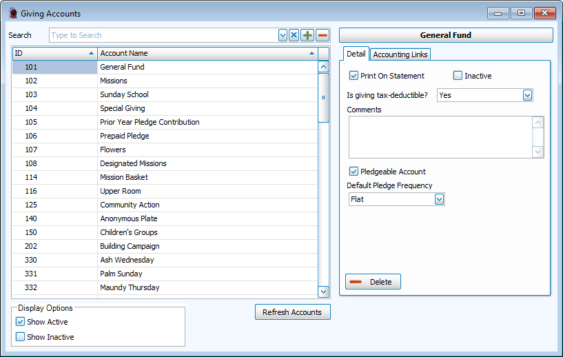Marking an account Inactive will hide it on the Enter Donations screen. This keeps the giving history, but it will not take new donations.
