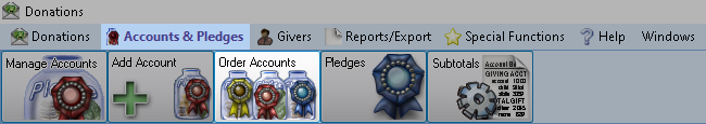 To access from the Button Bar, go to Accounts & Pledges > Order Accounts.