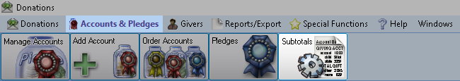 To access from the Button Bar, go to Accounts & Pledges > Subtotals