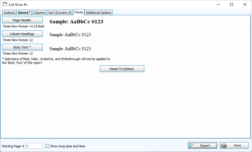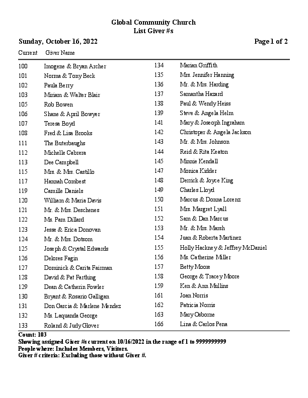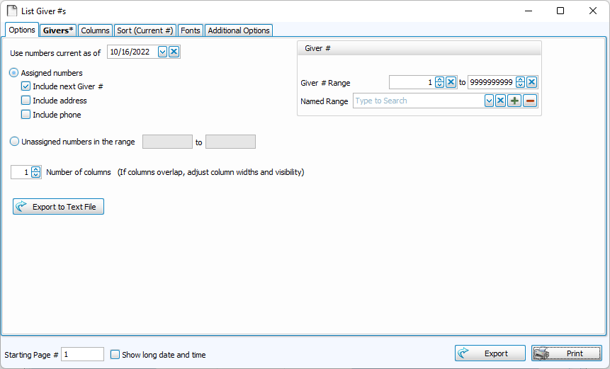 • Use Giver Numbers as of classifies numbers assigned to people and giving units on those dates as current.