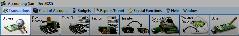 To access from the Button Bar, go to Transactions > Browse