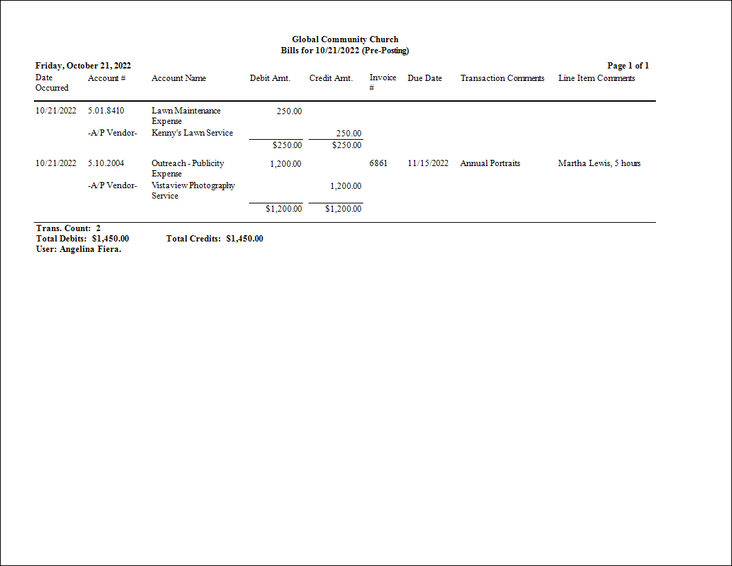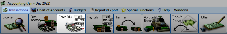 Bills received by the church are recorded in Enter Bills. You have the option to move intoPay Bills after entry. Use Credit Memos to reduce a balance without entering a payment.
