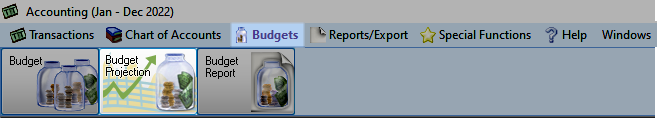 To access from the Button Bar, go to Budgets > Budget Projection