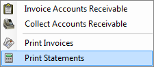 - Depending on which function you need, click either the Print Invoices, or the Print Statements option.