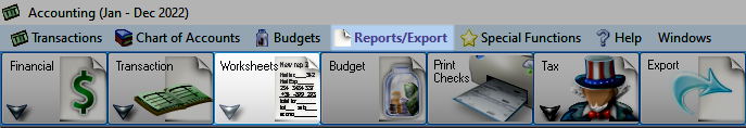 To access from the Button Bar, go to Reports/Exports > Worksheets > Accounts Payable.