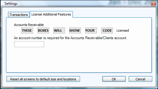 The software contains an Accounts Receivable option which must be activated by entering a Licensing key. The license key is given to you when you subscribe to the Accounts Receivable module.