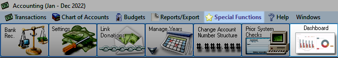 To access from the Button Bar, go to Special Functions > Dashboard.