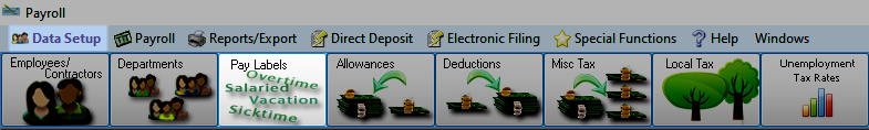 To access from the Button Bar, go to Data Setup > Pay Labels