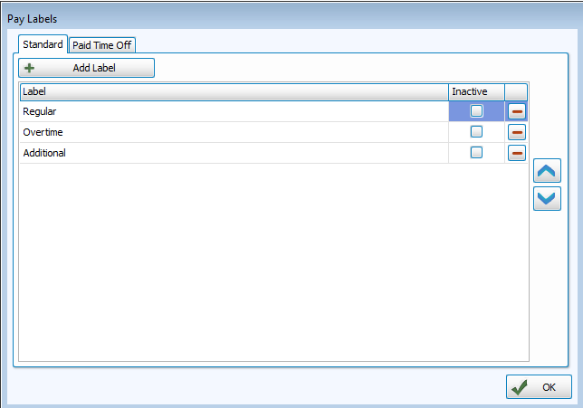 Pay labels allow you to indicate types of pay rates. You might want to have one rate for regular employment hours and another rate for overtime or holiday pay, for example.