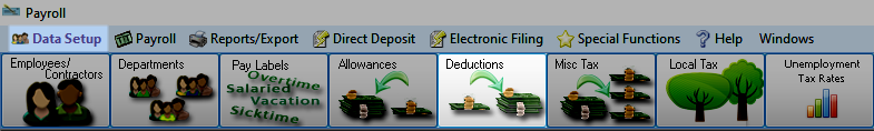 To access from the Button Bar, go to Data Setup > Deductions