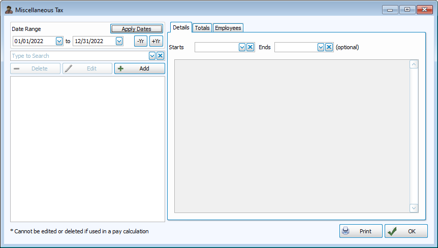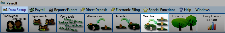 To access from the Button Bar, go to Data Setup > Misc Tax