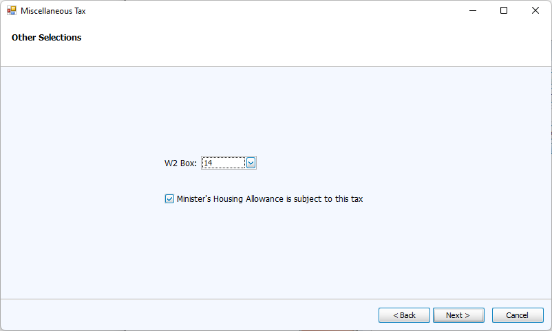 The Miscellaneous Tax wizard is for taxes that are often from the state or county.