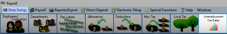 To access from the Button Bar, go to Data Setup > Unemployment Tax Rates