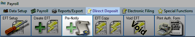To access from the Button Bar, go to Direct Deposit/EFT > Pre-Notify