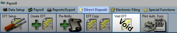To access from the Button Bar, go to Direct Deposit/EFT > Void EFT