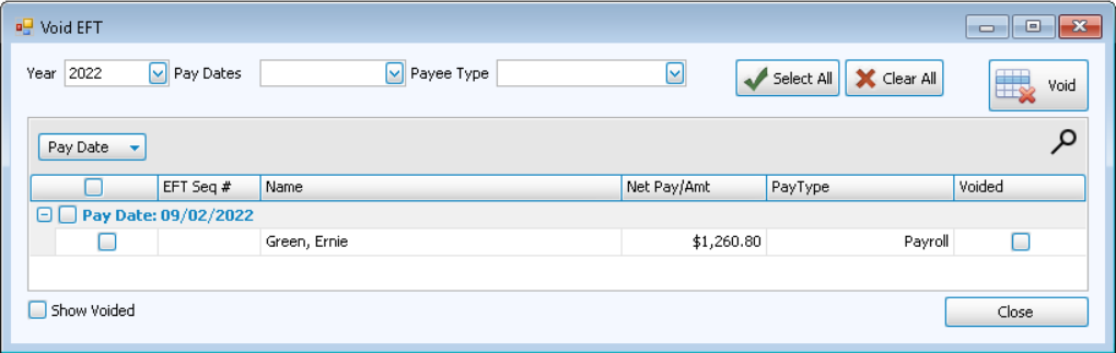 Void EFT allows you to reverse an EFT transaction in your Payroll record.