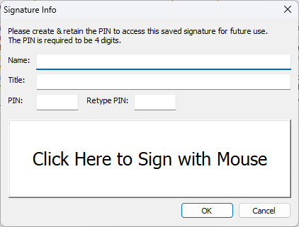 The first time you process and begin the submission process for eFiling, you'll be prompted to create an Electronic Signature. You will save your signature with 4-Digit PIN to use your signature for future fiilings.