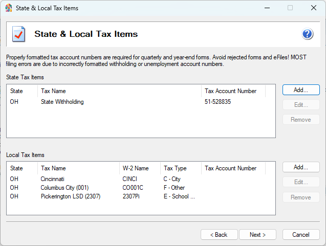 Some forms required additional information about State and Local designations. You'll receive an alert if you have additional information to provide about a Local or Miscellaneous tax.