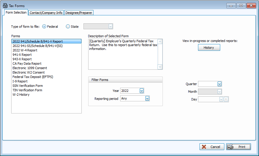 Once a form has been selected, choose the Quarter, Month or Day in the lower right, when applicable.
