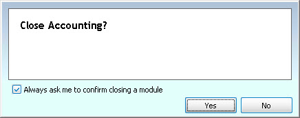 checkmark on the right side of this screen for the option to "Always ask me to confirm closing a Module". This determines if a Module will close right away when you click the red X in the upper right to close that Module or if it will first show a confirmation popup before closing the Module, like this: