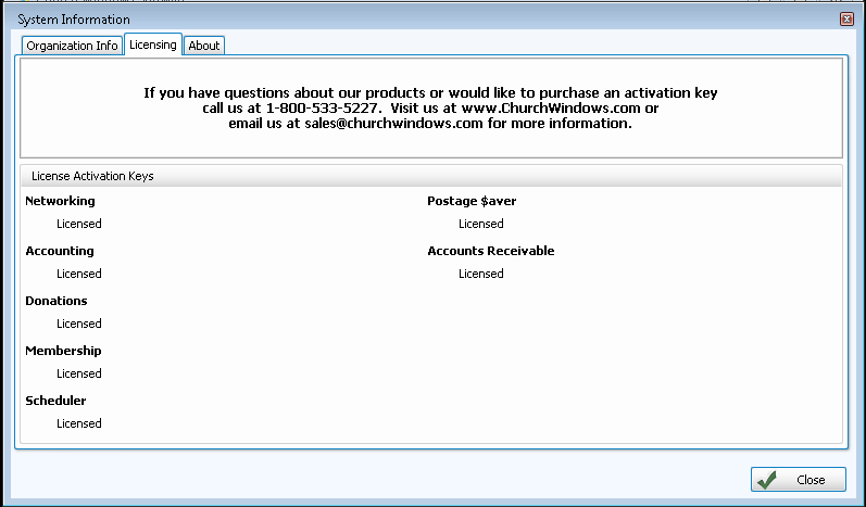 In Church Windows, the System Information screen contains your organization's name and address, and also gives you the opportunity to customize your copy of Church Windows.