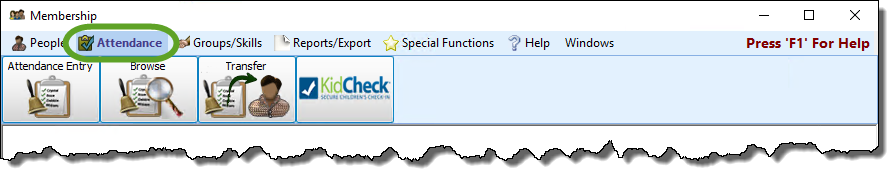 From the Attendance menu, you can perform Attendance Entry and Browse Attendance records for people, Events, and Groups / Classes as well as Transfer Attendance from one person to another. Additionally, you can synchronize Church Windows with our partners at KidCheck if you subscribe to their service as well.