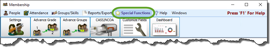 These options allow you to adjust the default Membership Settings, Advance School Grades recorded on The Individual Record, and Advance Groups / Classes from one level to the next.You can Create a CASS/NCOA file or Import your Output from Lorton to verify the addresses in your database for Bulk Mailings. Additionally, you can Customize Fields in The Family Record and The Individual Record to store all of the information you need. Finally, you can view and customize various charts and graphs on the Membership Dashboard.