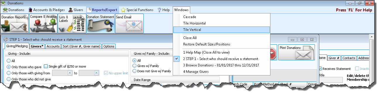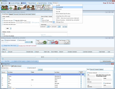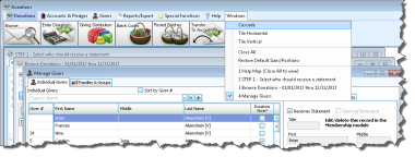The Windows dropdown menu is divided into three sections which allow you to adjust how your windows or screens appear in the current Module. These options are quite handy when multitasking with various functions in the software.