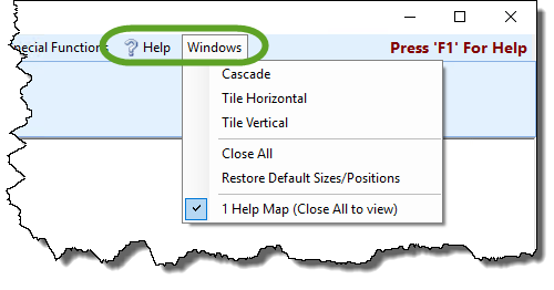 The final two options in the Button Bar across the top of the screen are Help and Windows.