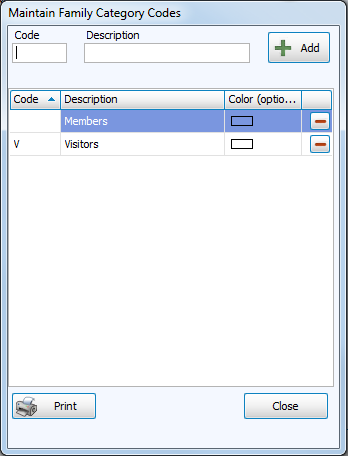 If needed, click the Add/Edit Family Categories button in the bottom left to Add New Categories or edit existing category names, codes, or colors.Note: